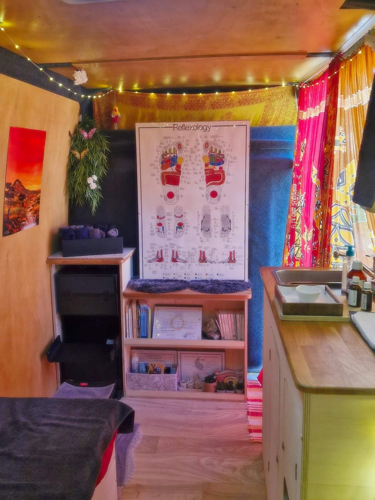 Je me déplace à domicile, en entreprise ou dans les Ehpad de la périphérie toulousaine avec mon cabinet mobile, un fourgon aménagé contenant tout le matériel nécessaire.
